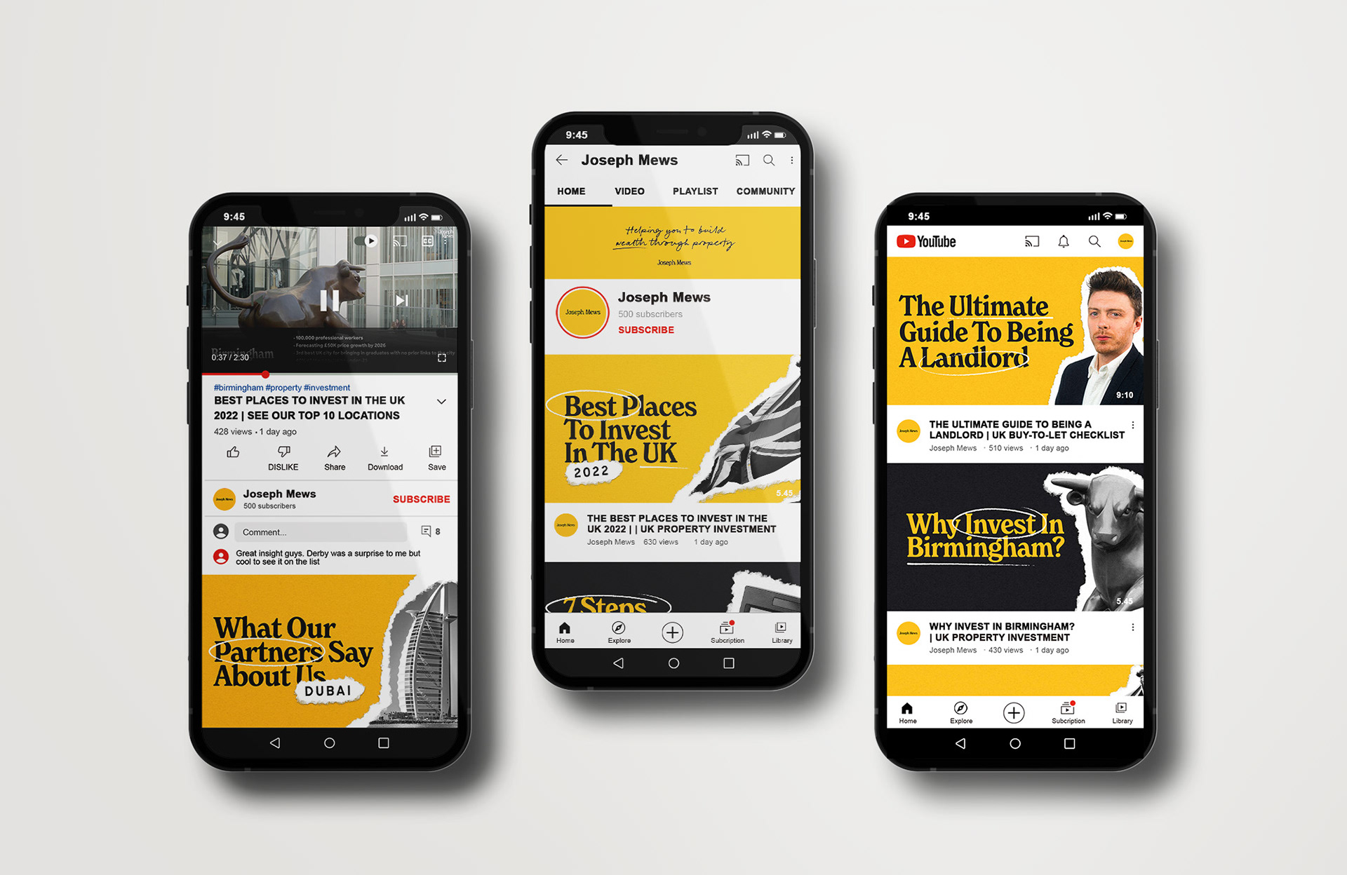 I worked with Property Investment company Joseph Mews to create marketing collateral across multiple channels including social and site content. This highlighted my ability to adapt to an established brand, using a smaller palette of yellow, black and white to create a variety of different assets whilst maintaining a visual consistency. Designs were amended and updated based on real-time data from other teams, which led to an increase in engagement. In our social content, carousels helped us condense huge amounts of content while landmarks provided immediate clarity on the subject matter.